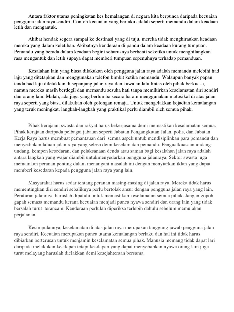 Contoh Karangan Bm Pt3 Kemalangan Jalan Raya